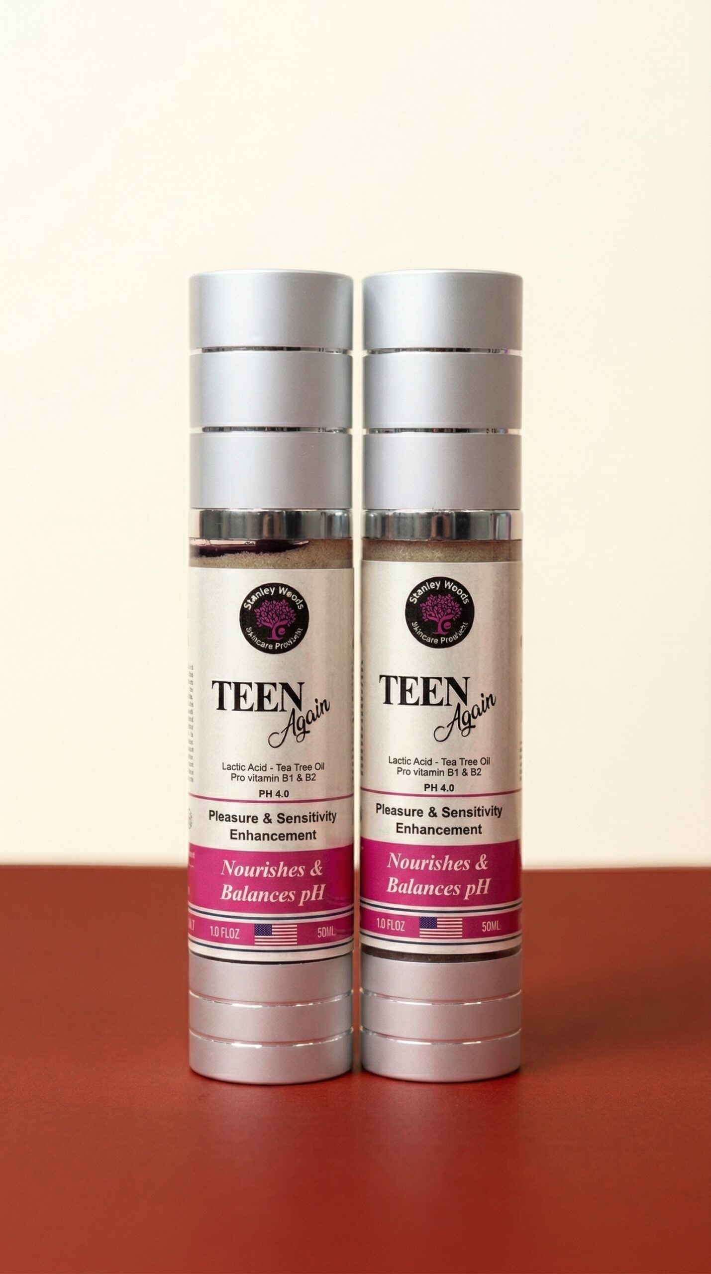 Teen Again Pleasure & Sensitivity Enhancement Gel is a nourishing intimate care formula designed to balance pH, enhance sensitivity, and support feminine comfort. Made with Lactic Acid, Tea Tree Oil, and Pro Vitamin B1 & B2, this 50ml gel helps maintain a healthy intimate environment while delivering soothing and refreshing care.